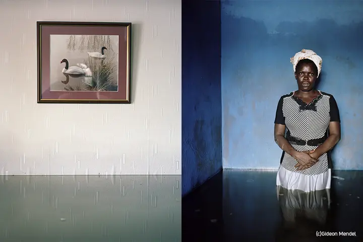 Seit mehr als zehn Jahren reist der Fotograf Gideon Mendel um die Welt und fotografiert dort, wo Städte, Landschaften, Straßen und Häuser in gewaltigen Wassermengen untergehen. Sein Langzeitprojekt „Drowning World“ (Die ertrinkende Welt) zeigt, dass die Fluten nicht wählerisch sind, nicht unterscheiden und ihre zerstörerische Kraft etwa auf den Philippinen, in Deutschland, in den USA oder auch in Indien gleichermaßen entfalten.